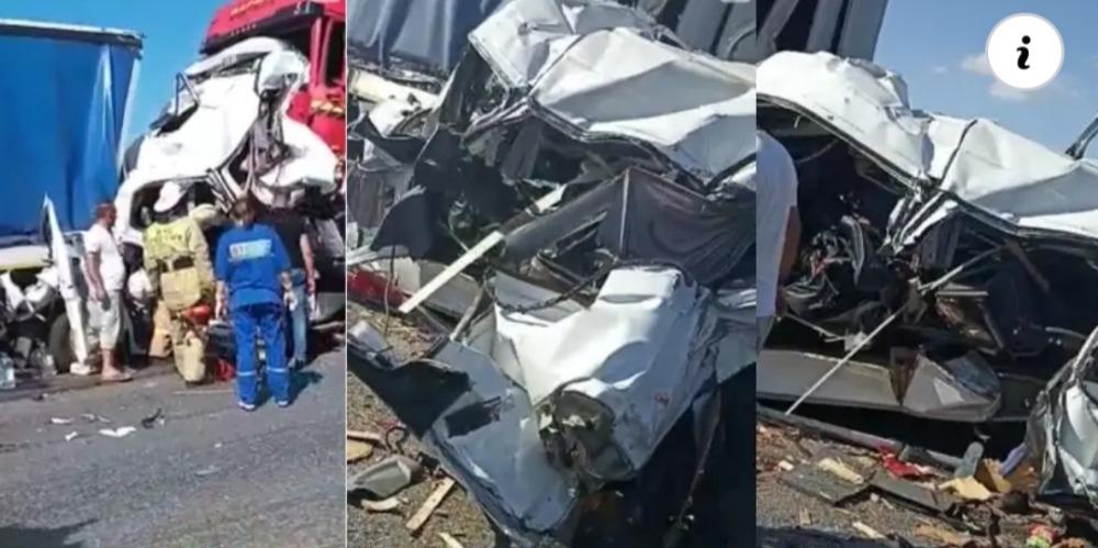 Россия ИИМнин башкармалыгынын маалыматына ылайык, фуранын айдоочусу унаасын токтото албай автобусту сүзгөн. Автобус эки жүк ташуучу унаанын ортосунда калган.