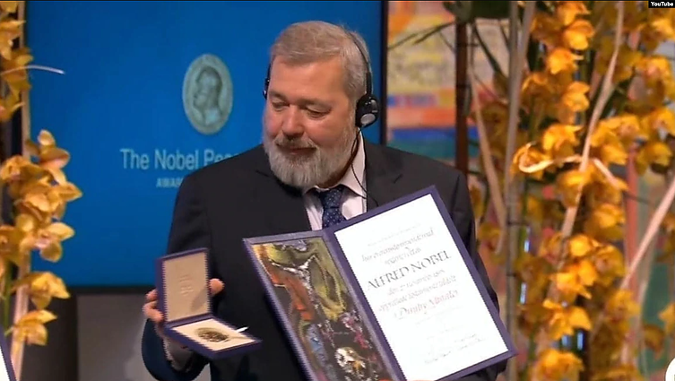 Дмитрий Муратов Нобель Тынчтык сыйлыгын 2021-жылы филиппиндик журналист Мария Ресса менен чогуу алган. Аларды сыйлоо аземи былтыр 10-декабрда Норвегиянын борбору Ослодо өткөн. Нобел комитетинин билдирүүсүндө, журналисттерге абройлуу эл аралык сыйлыкты “демократияга жана тынчтыкка өбөлгө түзгөн пикир эркиндигин коргоодогу аракеттери үчүн” берилген.