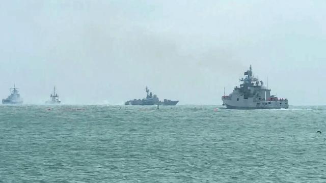 Билдирүүгө ылайык, Каспий деңизиндеги машыгууга 20га жакын аскердик кеме катышууда.