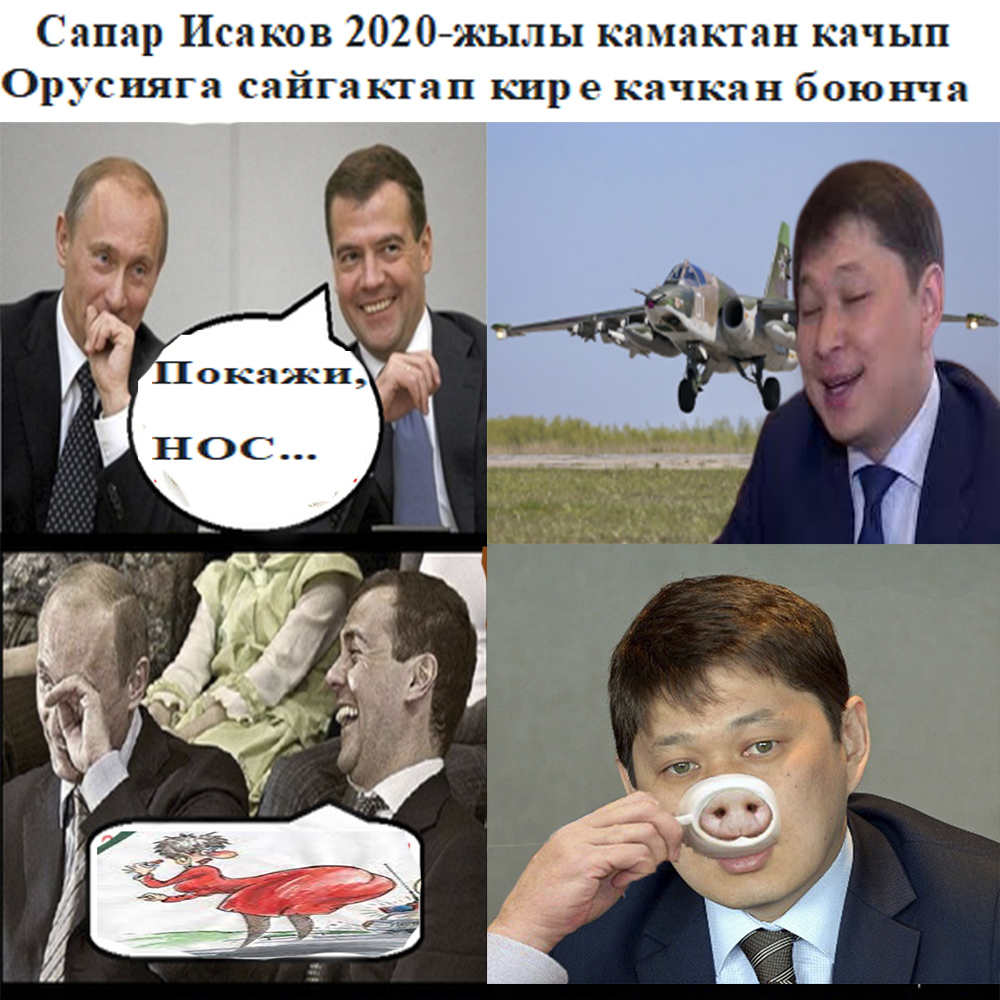 4. Атамбаев мамлекетти жетектеп турганда “Кыргызгазды” “Газпромго” 1 долларга саткан. Бирок “Газпром” жең ичинен бирдеме берсе бергендир, ошондон бери Кыргызстанга кыйратып деле эч нерсе кылган жок. Сапар Исаковдун качышына “Газпромдун” аттуу-баштуу атка минерлери түрткү болгон. Диңкилдеген бойдон качкан Сапар Исаковдун демине-дем кошуп Канттагы орусиялык базадан учуруп кетишкен. Аны жашырып да коюшпаптыр. Учурда Сапар Исаков Москванын Кремлинде кагаз чиймелеп жооптуу иштерди аркалайт. Орусияга да түшүнсө болот, Кыргызстанда улам бийлик алмаша берип, Кремлди да жүдөтүп бүттү. Ошондуктан, Сапар Исаковго окшогон келечектен үмүт оту жылт эткендерди “барымтага” кармап турбаса да болбойт да. Андан тышкары Сапар Исаков президент болсо, Кремль Атамбаев менен да алаканы түздөп калат.