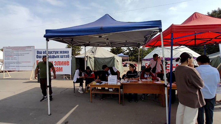 Ош облусу жана Ош шаарынын борбордук штабы ишмердүүлүгүн улантууда, жардам көрсөтүүнү каалаган жарандар Ош шаарынын борбордук аянтында келсеңиздер болот.