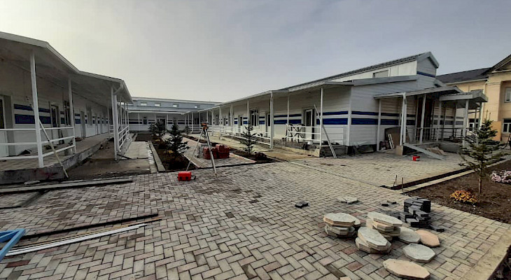 “Буйрутма аткаруучу компания тарабынан оорукананын жандандыруу бөлүмүнүн, 1 жана 2-чи дарылоо блокторунун курулуш-монтаж иштери бүткөрүлдү. Жылуулук системасы, суу түтүктөрү орнотулуп, канализация тартылды. Ошондой эле эшик-терезелер, өрт сигнализациясы орнотулуп, ички жасалгалоо жана кафель чаптоо жумуштары бүткөрүлдү. Учурда брусчатка төшөө, жарыктандыруу жана оорукананын тегерегин тегиздөө иштери жүрүүдө”, – деп билдирет аталган агенттик.