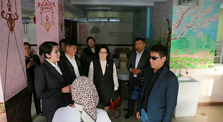 Андан ары Ош шаарынын тургуну Кызбурак Жусупованын 100 миң сом алып ачкан коомдук тамактануу жайын көрүштү. Бул тамактануучу жайда 5 адам эмгектенет. Жусупова бул жайды ачканга чейин Ош шаардык Эмгек, социалдык камсыздоо жана миграция башкармалыгынан эки баласы үчүн үй-бүлөгө көмөк жөлөк пулун алып келген.
