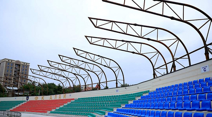Маалыматта белгиленгендей, учурда борбордук А. Сүйүнбаев атындагы стадиондун олтургучтарынын үстүн жабуу иштери жүрүп жатат. Долбоорго ылайык жалпы 10 миңдей олтургучтун үстү жабылат. Бул олтургучтарды күн нурунан күйүп, жаан чачында сууда калып, талкалануусунун алдын алат. Муну менен катар футбол талаасы жана чуркоо тилкелери да эл аралык талаптарга ылайык келтирилет. Курулуш иштерин август айында бүткөрүү каралган.
