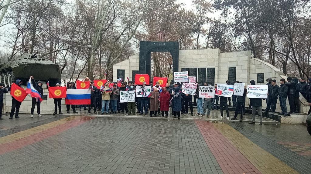 "Акцияга чыккандардын арасында кыргыздар да, орустар да болду, жалпы жонунан 300дөй киши чогулду. Алар өз сөзүндө негизинен Орусия Кыргызстандын жакын досу жана башкы өнөктөшү экенин айтып жатышты", — дешти уюштуруучулар.