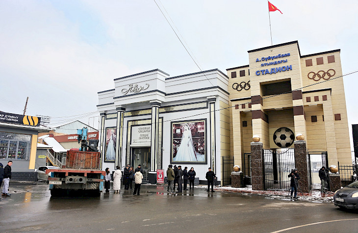Муниципалитеттен билдиришкендей, стадионунун кире беришиндеги "Топ спорт" спорттук дүкөнгө Ош шаарынын мурдагы мэри Жумадыл Исаковдун 2006-жылдын 29-мартындагы токтомунун негизинде 2007-жылдын 24-январында жер участогуна болгон жеке менчик укугу жөнүндө мамлекеттик акты берилген.