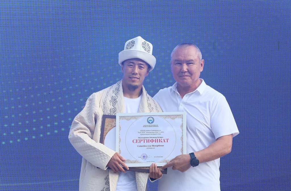 Алсак Олимпиада оюндарынын күмүш медалынын ээси Мунарбек Сейитбек уулуна Ош шаарынын мэриясынын атынан 3 бөлмөлүү батирдин ачкычы жана 1 млн сом, ал эми анын машыктыруучусу Беганас Султанбаевге 2 бөлмөлүү батир жана 500 000 сом, дагы бир машыктыруучусу Оморов Турдалы Оморовичке 500 000 сом акчалай сыйлыктын сертификаты тапшырылды.