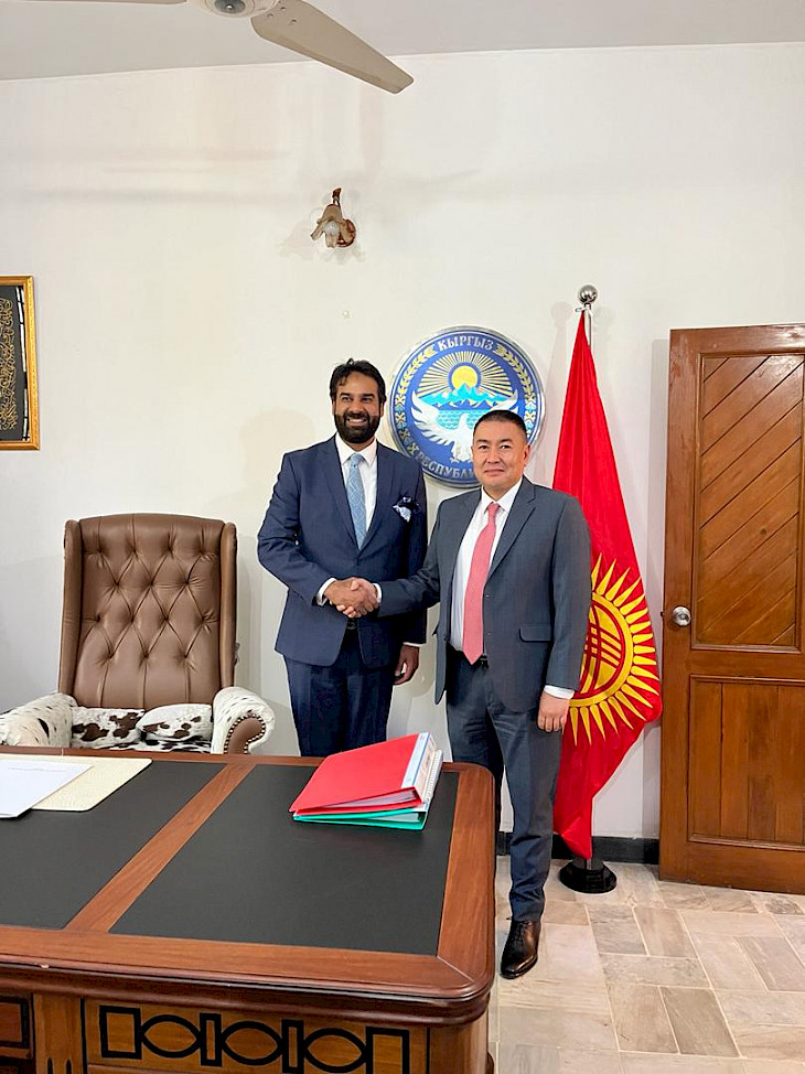 Салтанаттуу аземдин жүрүшүндө Кыргызстандын Пакистандагы элчиси Улан Тотуяев К.Ю.Мехерди Кыргызстандын Лахор шаарындагы ардактуу консулу кызматына расмий дайындалышы жана кеңсенин ачылышы менен куттуктады.