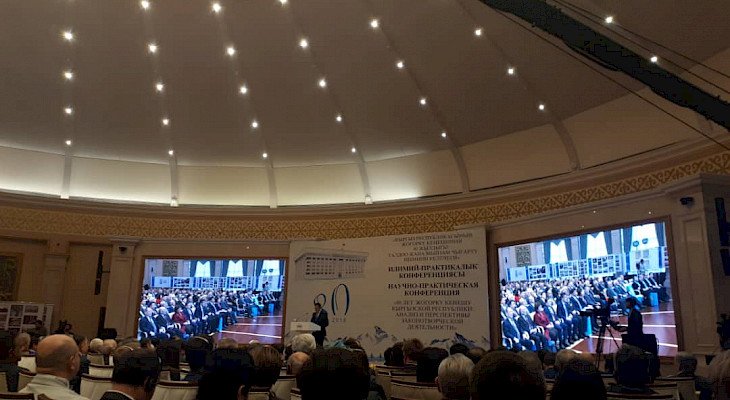 «Ала-Арча» мамлекеттик резиденциясында кыргыз парламентинин 80 жылдык маарекесине карата «Кыргыз Республикасынын Жогорку Кеӊешине 80 жыл: мыйзам чыгаруу ишмердүүлүгүнө талдоо жана анын келечеги» темасындагы илимий-практикалык конференция өтүп жатат.