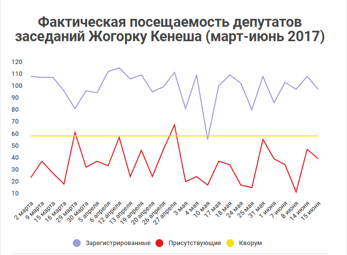 Графикке ишенсек 2017-жылдын 3 айында кворум 2 гана жолу болгон: 29-мартта жана 27-апрелде.