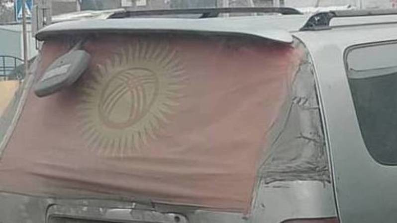 Бишкек шаарындагы айдоочу унаасынын арткы айнегин Кыргызстандын желеги менен жаап алган. Бул тууралуу күбө билдирди.