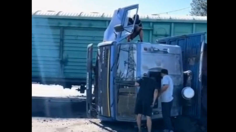Маалыматка ылайык, кечээ, 17-августта саат 16:15 чамасында Бишкек-1 станциясы менен Мурманск көчөсүнө жакын жайгашкан №49 туташтыруучу темир жол өтмөгүндө маневрдик поезд менен көмүр ташыган чиркегичи бар КамАЗ жүк ташуучу унаа кагышкан.
