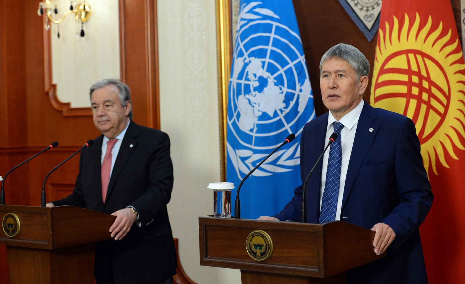 Кыргыз Республикасынын Президенти Алмазбек Атамбаев менен өлкөбүзгө жумушчу сапар менен келген Бириккен Улуттар Уюмунун Баш катчысы Антониу Гутерреш басма сөз үчүн билдирүү жасашты. Бул тууралуу президенттик басма-сөз кызматы билдирди.