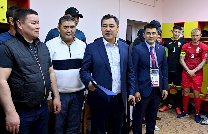 Беттеш аяктаган соң мамлекет башчысы улуттук кураманын кийим алмаштыруучу жайына кирип, команданы бул ийгилиги менен куттуктады.