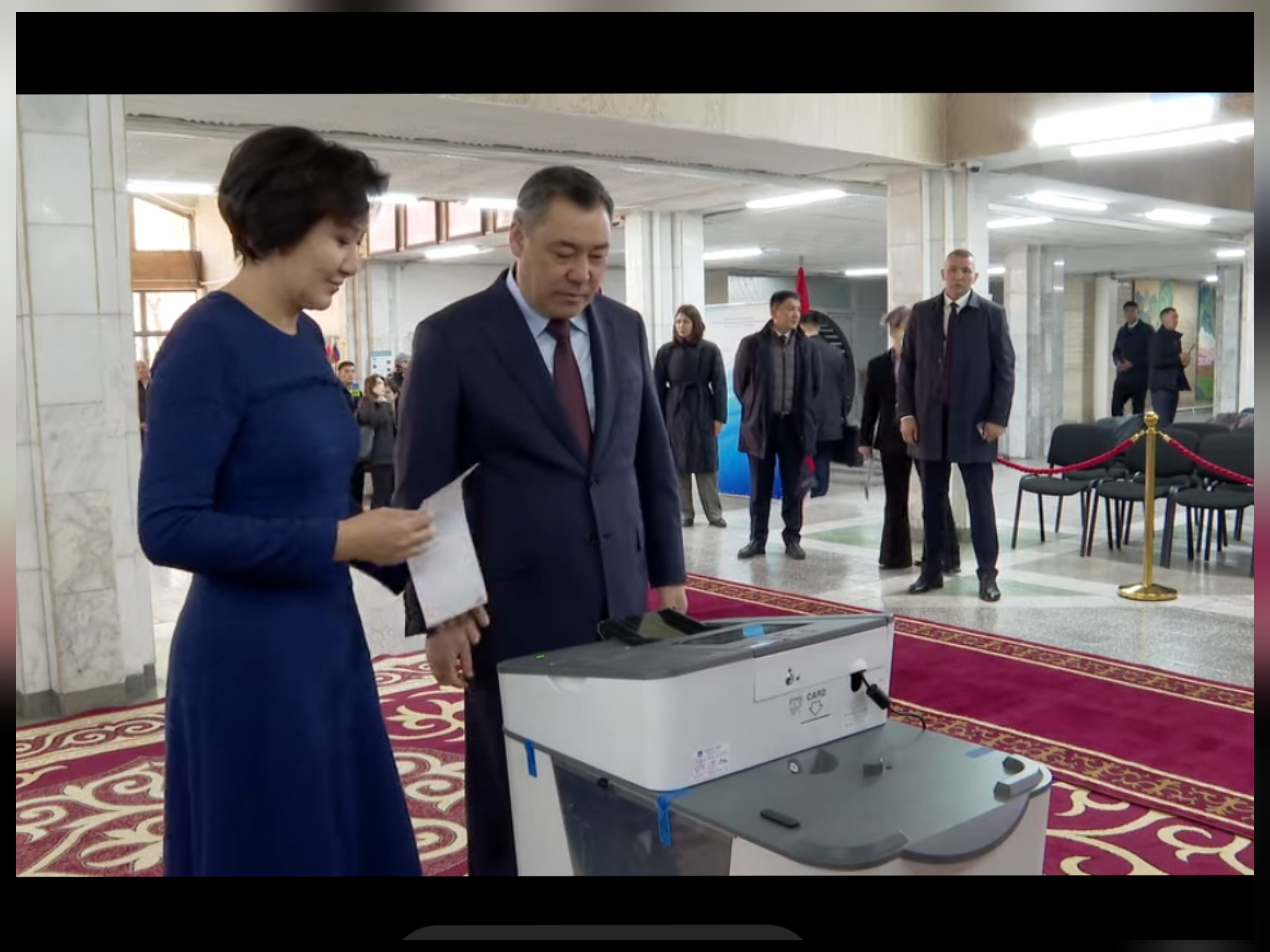 Жогорку Кеңештин депутаттарын мөөнөтүнөн мурда шайлоонун жүрүшүндө президент Садыр Жапаров Бишкектеги №1046 шайлоо тилкесинен добуш берди.