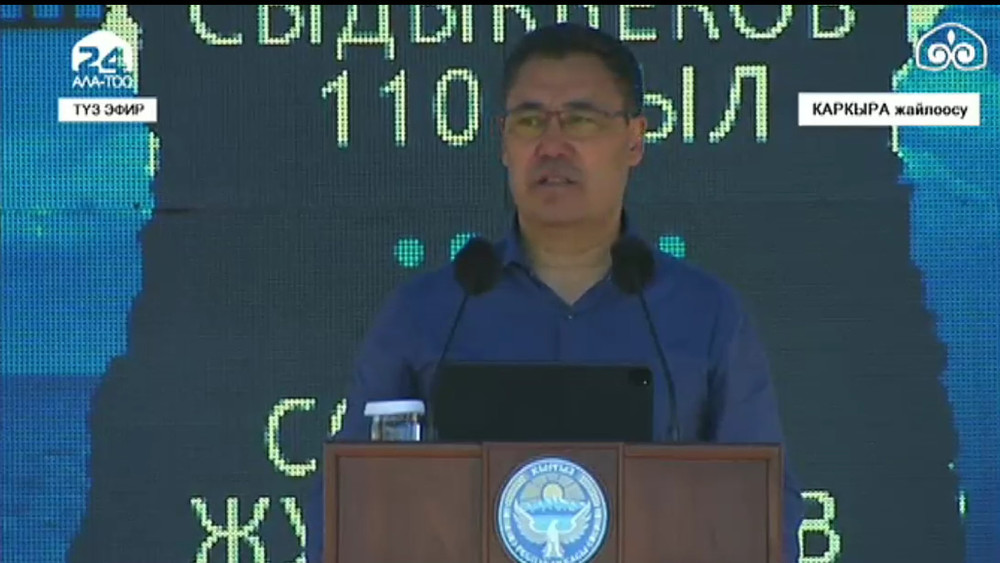 Президент Садыр Жапаров бүгүн, 23-июлда, Ысык-Көл облусунда чыгаан жазуучу, коомдук ишмер, Кыргызстандын баатыры Түгөлбай Сыдыкбековдун 110 жылдыгынын жана Кыргыз ССРинин эл артисти Советбек Жумадыловдун 90 жылдыгынын урматына арналып өткөн салтанаттуу иш-чарага катышты.