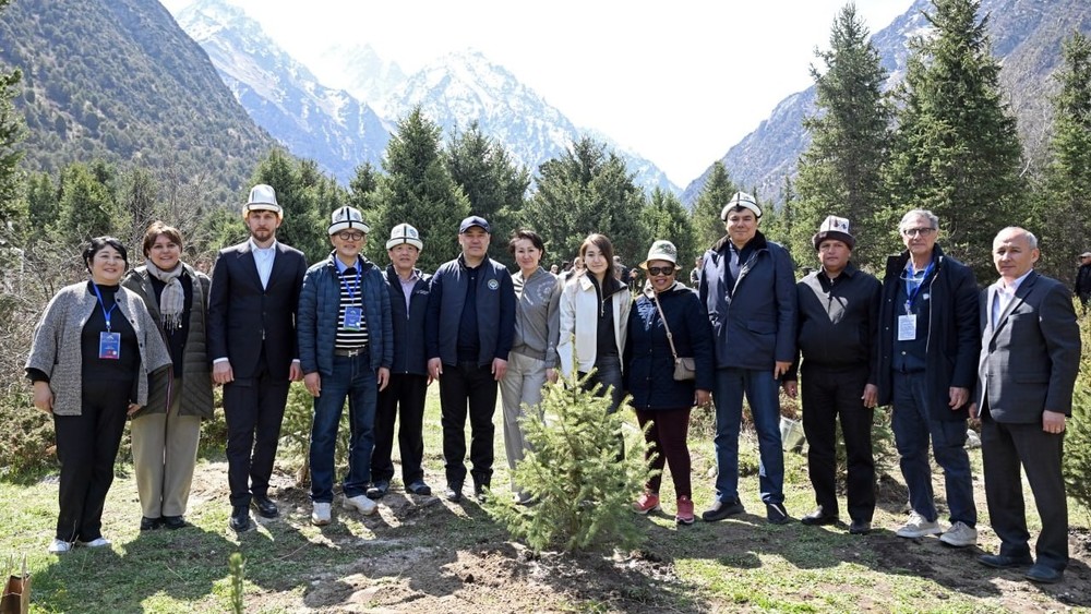 Иш-чара курчап турган чөйрөнү коргоо жана тоолуу аймактарды туруктуу өнүктүрүү боюнча Глобалдык тоо диалогунун катышуучуларынын күч-аракеттеринин биримдигин чагылдырган бак-дарактарды отургузуу аземи менен жыйынтыкталды.