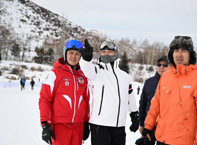 Мамлекет башчысы эс алуу аймагынын инфраструктурасын жана трассаларын көрүп чыкты, ошондой эле тоо боорлорунда лыжа тепти.