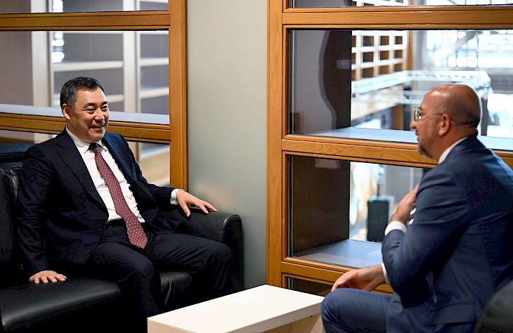 Андан кийин президент Садыр Жапаров Европа Кеңешинин президенти Шарль Мишель менен тар жана кеңейтилген курамда сүйлөшүүлөрдү жүргүздү.