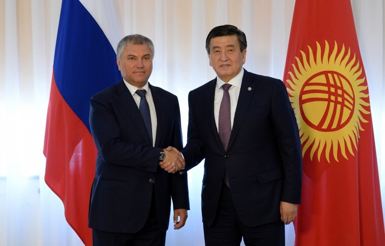 Мамлекеттик Думанын Төрагасы Вячеслав Володин Кыргызстан Президенти Сооронбай Жээнбековго Россия Президенти Владимир Путиндин саламын жана жакшы каалоолорун айтты жана Россия менен Кыргызстан Жамааттык Коопсуздук Келишими Уюмуна кирген стратегиялык өнөктөштөр экенин, бул эки өлкө ортосундагы ишенимдин жогорку деңгээлде экенин далилдеп турганын белгиледи.