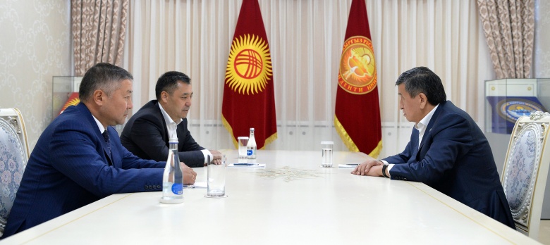 Кыргыз Республикасынын Президенти Сооронбай Жээнбеков бүгүн, 14-октябрда, Жогорку Кеңеш Төрагасы Канатбек Исаев жана өлкөнүн Премьер-министри Садыр Жапаров менен жолугушту.