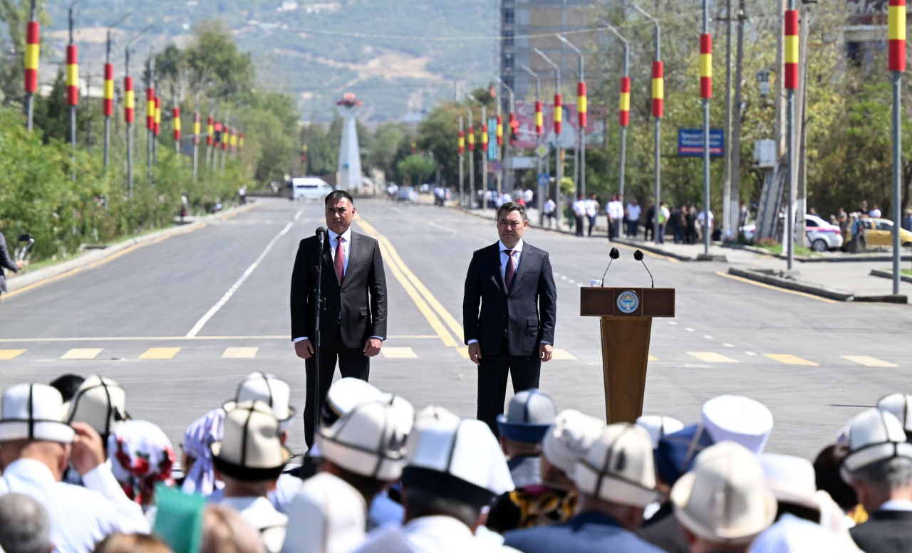 "Өлкөбүздөгү чоң-чоң шаарларды өнүктүрүүгө мындай каражат биринчи жолу бөлүнүп берилип жатканын баса белгилей кетейин. Чындыгында эле шаар макамын алып жүргөн калктуу пункттарыбыз шаар деген атка татыктуу болушу зарыл. Бул суммага шаарда буга чейин болбогон ири курулуштар жүрүп, социалдык-экономикалык багыттагы ондон ашык долбоорлор ишке ашырылып жатат. Азыр биз турган мына ушул көчө да жогоруда аталган каражаттын эсебинен жаңыланды. Мындан сырткары, учурда шаардын көптөгөн ички жолдорун оңдоо жумуштары кызуу жүрүп жатат. Долбоорго бир катар өндүрүштүк ишканалар жана социалдык объектилерди куруу да камтылган. Быйыл Жалал-Абад шаарында курулуш жылы болду десем жаңылышпаймын. Муну баары Жалал-Абад шаарынын тургундарына ыңгайлуу шарттарды түзүп берүүгө багытталат", - деди Мамлекет башчы.