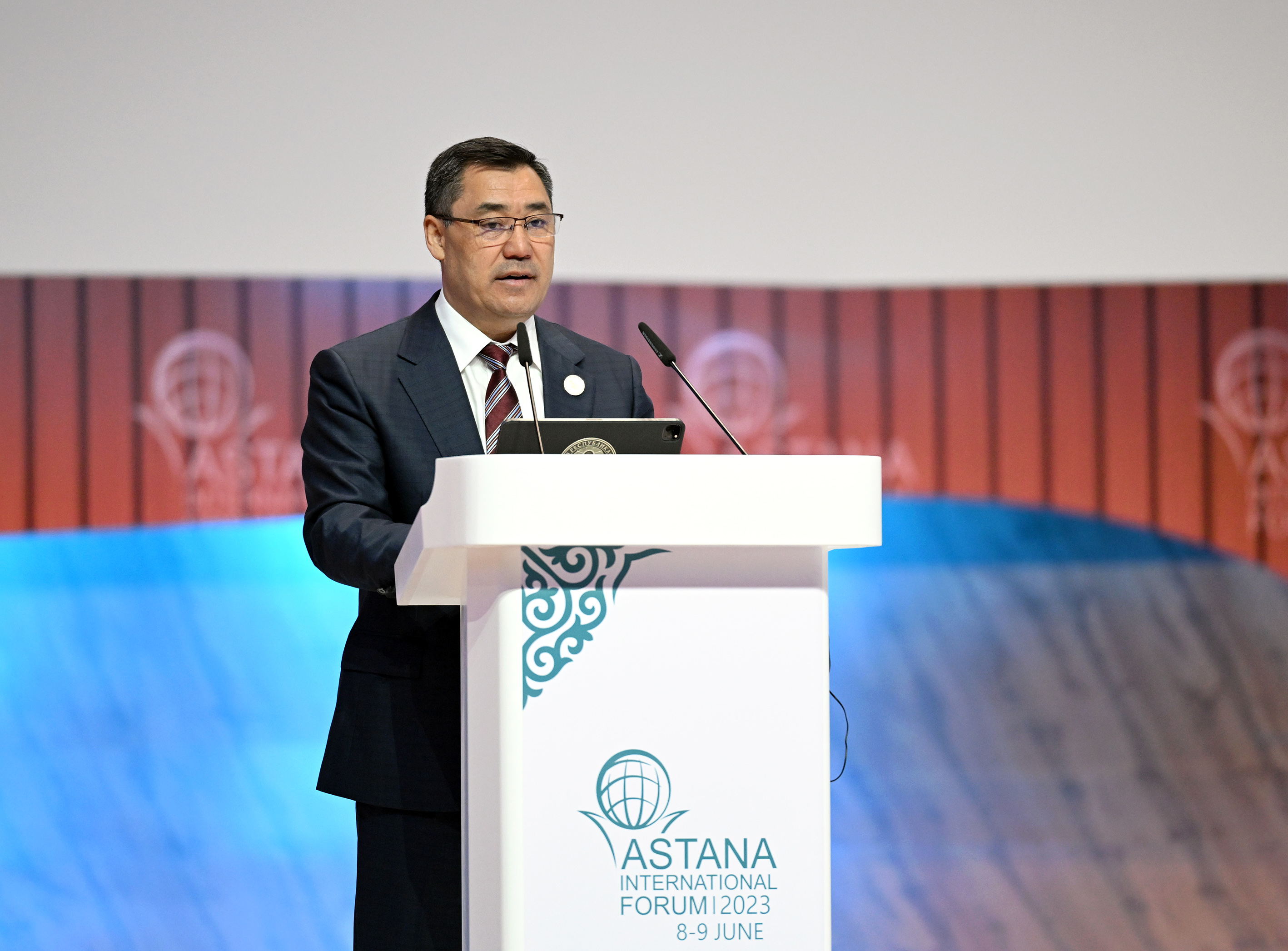 "Биздин өлкөлөр бири-бири менен тандалган багыттарын текшеришип, дүйнө менен сүйлөшө ала турган ар кандай аймактык форматтар барган сайын суроо-талапка ээ болуп баратат. Ошондуктан, мындай интеллектуалдык, эксперттик Эл аралык Астана форуму сыяктуу аянтчалар, мен керек болсо стратегиялык аянтчалар дейт элем, бүгүнкү күндө өзгөчө баалуу жана өзгөчө мааниге ээ. Мен жогорку аудиториянын алдында чыгып сүйлөгөнүмө жана ушул мүмкүнчүлүктөн пайдаланып, биздин иш-чаранын темасы боюнча өз оюмду бөлүшүүгө, эксперттик коомчулукка өз идеяларыбызды жана ой-пикирлерди айтууга абдан кубанычтамын. Биздин көз алдыбызда жаңы дүйнө тартибин калыптандыруу процесси эгемендүү мамлекеттерге жана бүткүл дүйнөлүк коомчулукка коркунуч жана коопсуздук чакырыктарынын күчөшү менен коштолууда. Сиздердин көңүлүңүздөрдү Кыргызстан гана эмес, бүткүл дүйнө туш болгон айрым маселелерге бурсам", - деди Садыр Жапаров.