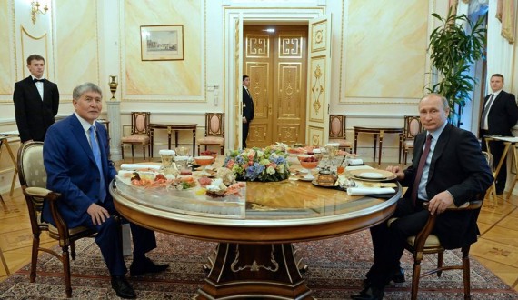Кыргызстандын президенти Алмазбек АтамбаевОрусиянын президенти Владимир Путин менен бейрасмий жолугушту. Жолугушуу үчүн мыкты дасторкон даярдалган.