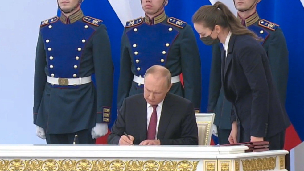 Кремлде Донецк жана Луганск элдик республикаларынын, ошондой эле Запорожье жана Херсон облустарынын Орусияга кошулуусу боюнча келишимдерге кол коюу аземи өттү.