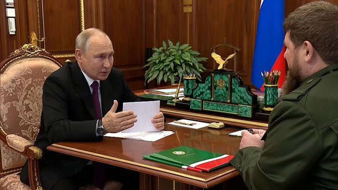 Владимир Путин Рамзан Кадыров менен Кремлде жолугуп, президент менен Чеченстандын башчысы республикадагы кырдаалды, социалдык чөйрөнү, чечен согушкерлеринин атайын аскердик операцияга катышуусун талкуулашты.