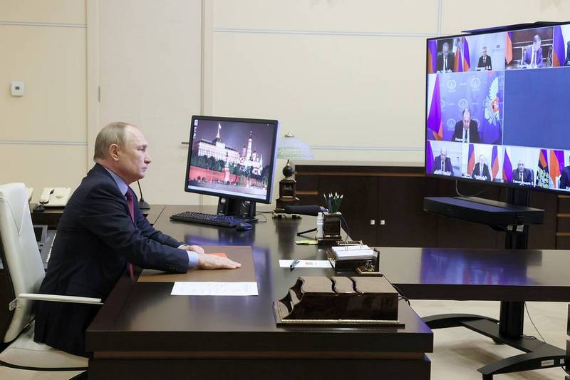 "Биз бири-бири менен байланышкан бир нече маселелерди талкуулайбыз. Коопсуздук кеңешинин туруктуу кеңешинин мүчөлөрү менен бүгүнкү жыйындын алкагында эки маанилүү - Орусиянын тышкы саясат маселелери жана коопсуздугун камсыз кылууга байланышкан жагдайлар тууралуу айтып жатам", - деди мамлекет башчысы дүйшөмбү күнү видеоконференция режиминде өткөн жыйынды ачып жатып.