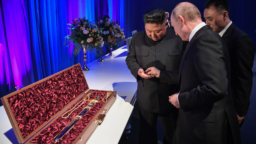 Владивостоктогу сүйлөшүүлөрдөн кийин Орусиянын президенти Владимир Путин менен Түндүк Кореянын лидери Ким Чен Ын бири-бирине белек беришти. Бул тууралуу Түндүк Кореянын борбордук маалымат агенттиги билдирет.