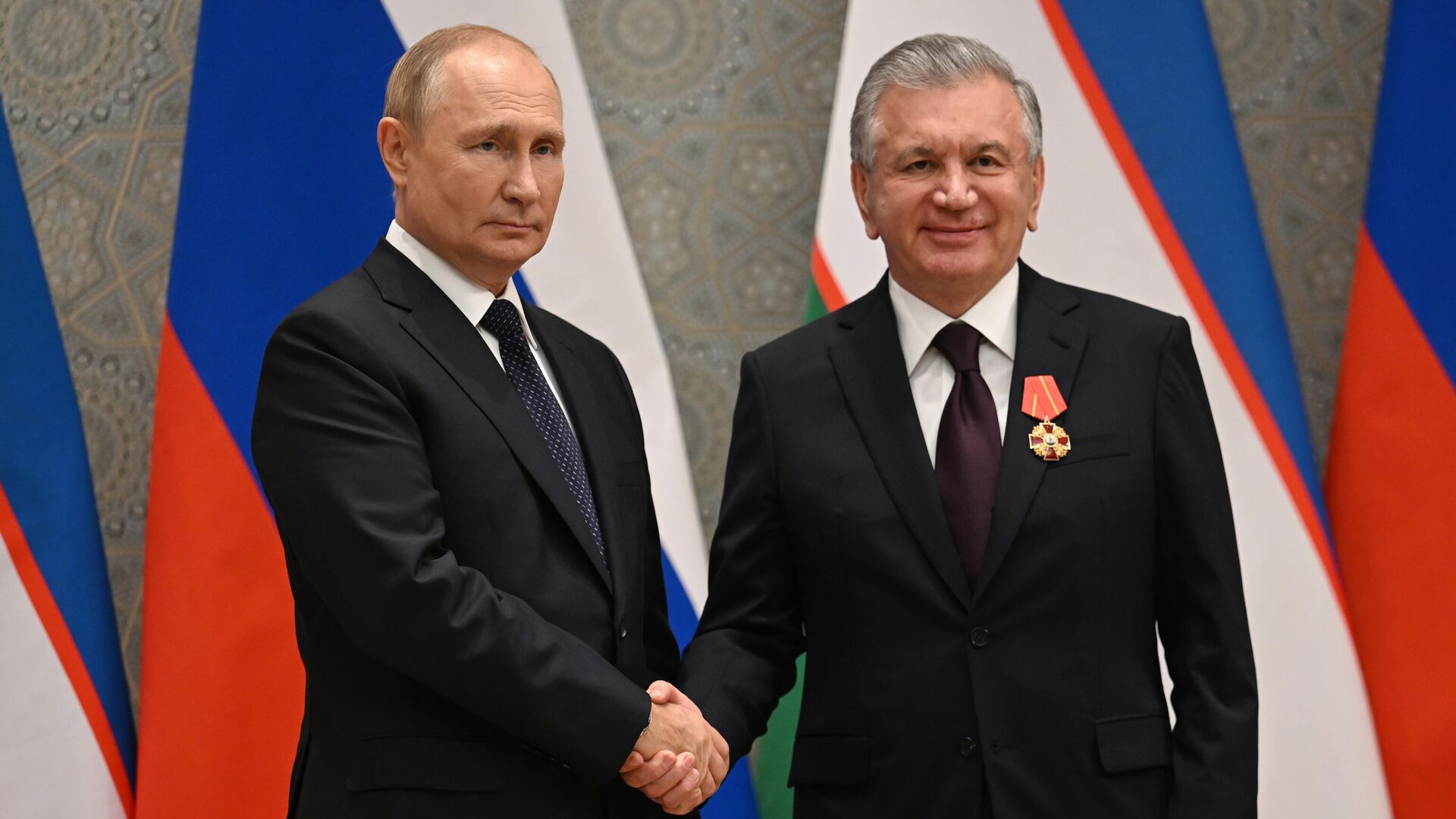 Владимир Путин Шавкат Мирзиёевге өлкөлөр ортосундагы достукту жана кызматташтыкты чыңдоодогу зор кызматы үчүн Александр Невский орденин тапшырды.