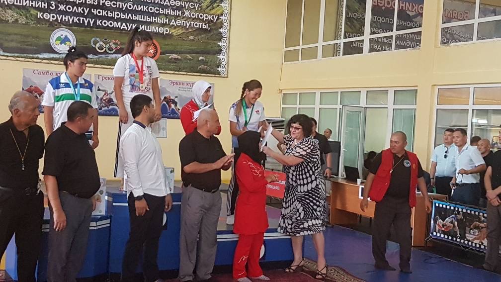 Кыз-келиндер арасында өтүп жаткан эл аралык Алыш күрөшүндө жеңүүчүлөргө “Курманжан Датка” фондунун негиздөөчүсү Жылдызкан Жолдошова жана "Аалам" саясий партиясынын лидери Арсланбек Малиевдин атынан акчалай сыйлык, о.э. баалуу белектер тапшырылды.