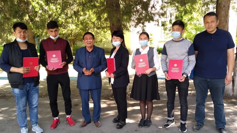 Ал эми мектептин бүтүрүүчүсү Таалайбек уулу Адилет: "Мына, Курама айыл аймагынан 10 балага турак жай куруу үчүн 15 сотыхтан жер тилкеси бөлүнгөнүн күбөлөндүргөн кызыл китептүү болдук. Биз өтө кубанычтабыз. Бизге жардам бергендерге рахмат", - деди.