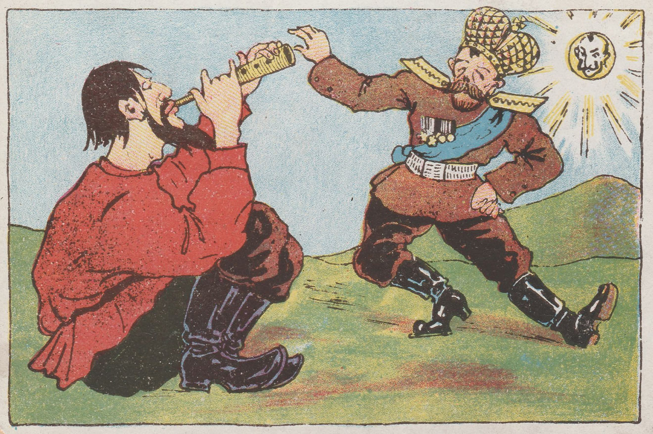 Гришка Распутиндин өлтүрүлүшү. «Эркиндик» антологиясынын 1917-жылдагы 1-санындагы карикатура