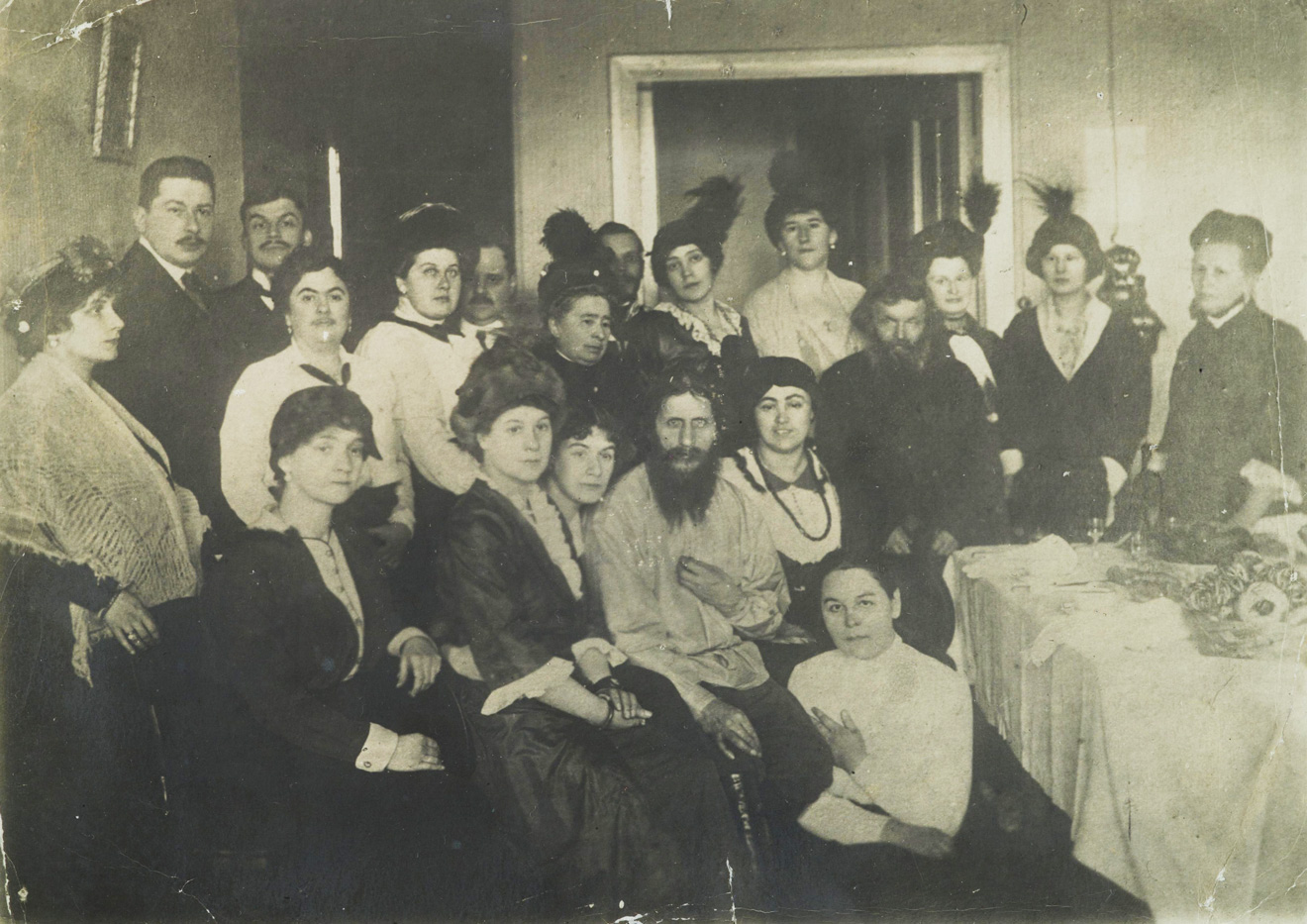 Григорий Распутин күйөрмандарынын курчоосунда. Санкт-Петербург, 1914-жыл