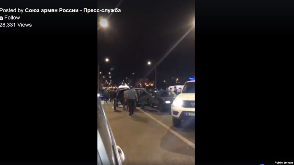 Москва шаарынын полициясы армян жана азери жамааттарынын бир нече кагылышуусунан кийин 25 кишини кармап кетти. Эки кылмыш иш козголгонун Ички иштер башкармалыгынын маалымат кызматына таянуу менен орусиялык басылмалар жазып чыгышты.
