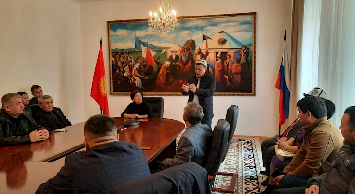 Маалыматка ылайык, элчи жолугушуунун катышуучуларына Кыргызстанда болуп жаткан окуялардын шартында башка мамлекеттердин өкүлдөрү менен чыр-чатактарды болтурбоо максатында Россиянын аймагында жүргөн жаштар арасында кеңири түшүндүрүү иштерин жүргүзүүгө көмөк көрсөтүү өтүнүчү менен кайрылды.