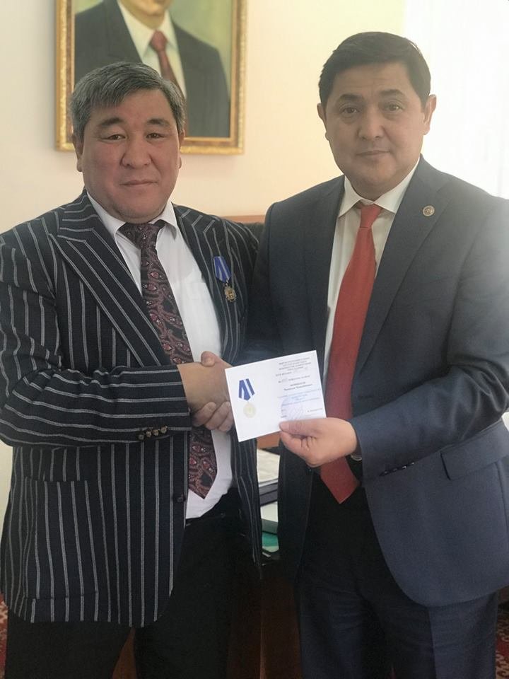 Жогорку Кеңештин КСДПчы депутаты Рыскелди Момбеков өлкөнүн коопсуздугун камсыз кылууга кошкон салымы үчүн «Улуттук коопсуздук мамлекеттик комитетине 100 жыл» юбилейлик медалы менен сыйланды.