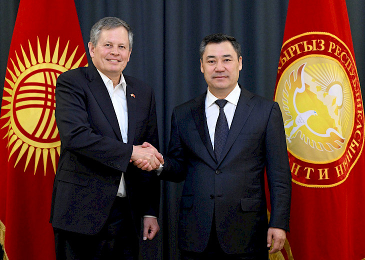 Президент Садыр Жапаров 28-мартта өлкөгө иш сапары менен келген Америка Кошмо Штаттарынын сенатору (Монтана штатынан) Стив Дэйнсти кабыл алды.