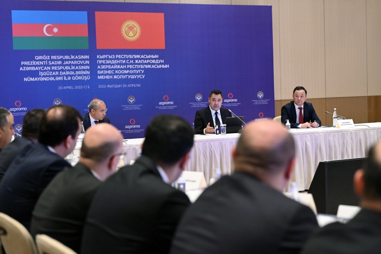 "Өз өлкөсүнүн динамикалуу, стабилдүү жана туруктуу өнүгүүсүн жактаган мамлекет башчы катары азербайжандык бизнес-коомчулукту Кыргызстанды ишенимдүү бизнес-өнөктөш катары кароого жана аларды жигердүү кызматташууга, ири инвестициялык долбоорлорду биргелешип ишке ашырууга чакырам", — деди ал.