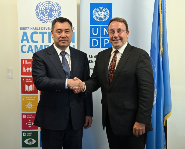 Президент Садыр Жапаров Нью-Йорк шаарында (АКШ) өтүп жаткан БУУ Башкы Ассамблеясынын 77-сессиясынын алкагында БУУ Өнүктүрүү программасынын администратору Аким Штайнер менен жолугушту. Бул тууралуу президенттин басма сөз кызматынан кабарлашты.