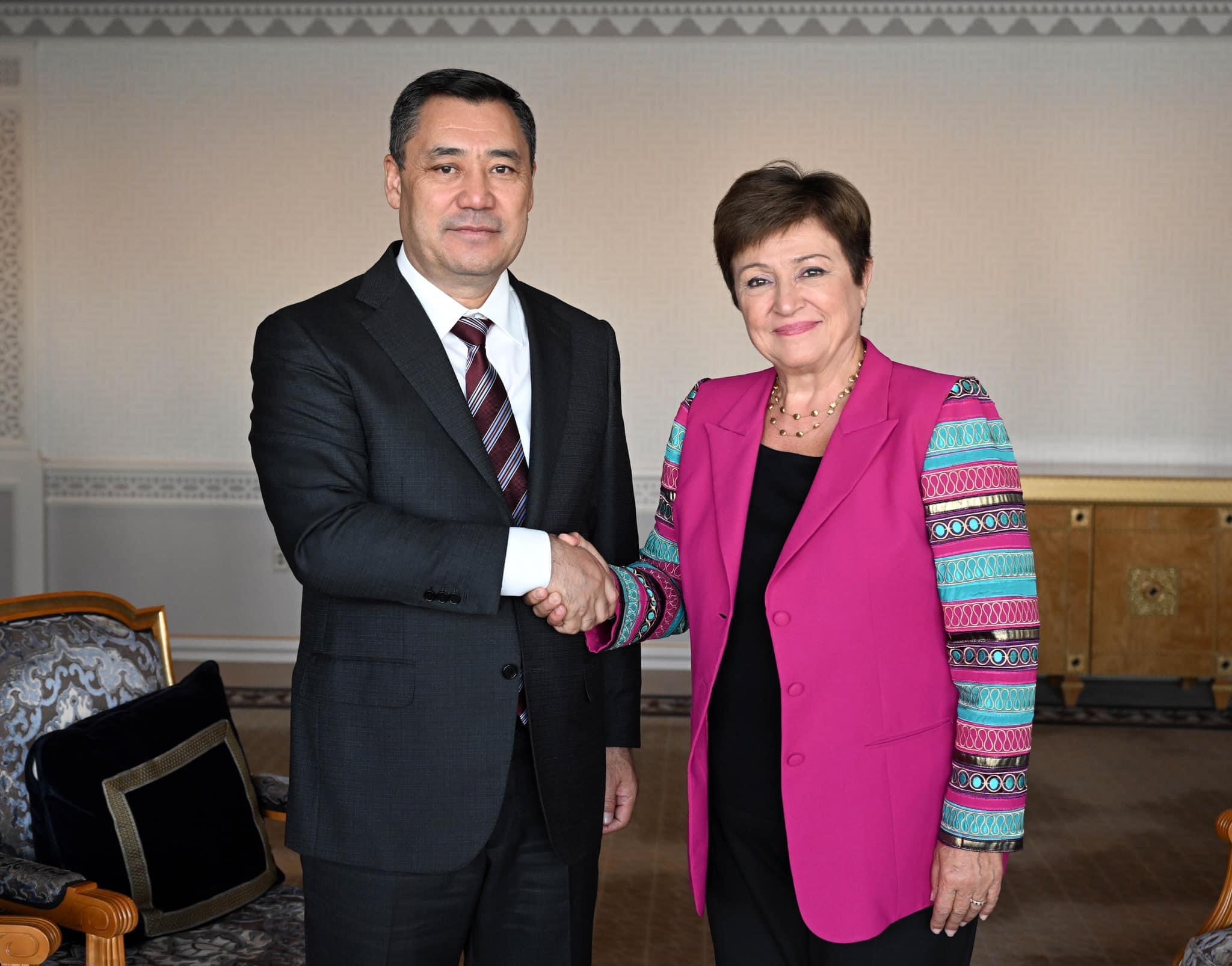 Садыр Жапаров менен саламдашууда Кристалина Георгиева Президент менен жеке жолугушуу жана ЭВФтин Кыргызстан менен өз ара пайдалуу кызматташтыгын мындан ары кеңейтүүнү талкуулоо мүмкүнчүлүгүн канааттануу менен белгиледи.