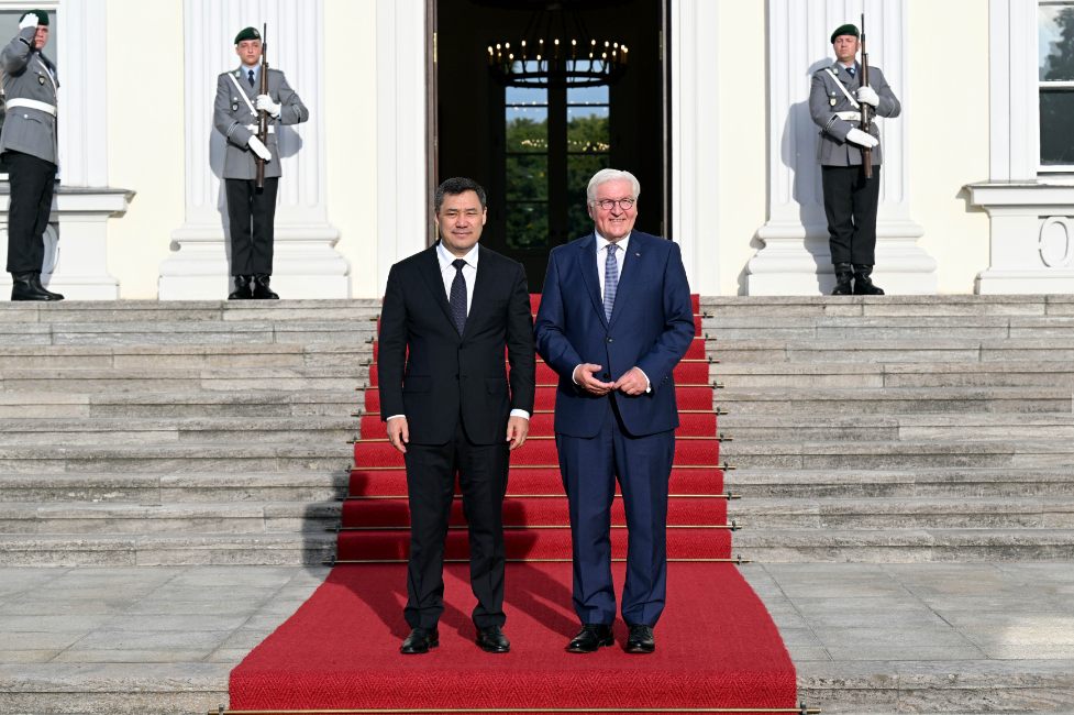 Президент Садыр Жапаров өз сөзүндө Германия Федеративдүү Республикасынын президенти Франк-Вальтер Штайнмайердин демилгеси менен бүгүнкү жолугушуунун өтүшү Германиянын Борбор Азия менен ар тараптуу кызматташтыкты мындан ары өнүктүрүүгө кызыгуусу артып жатканын айгинелерин белгиледи.