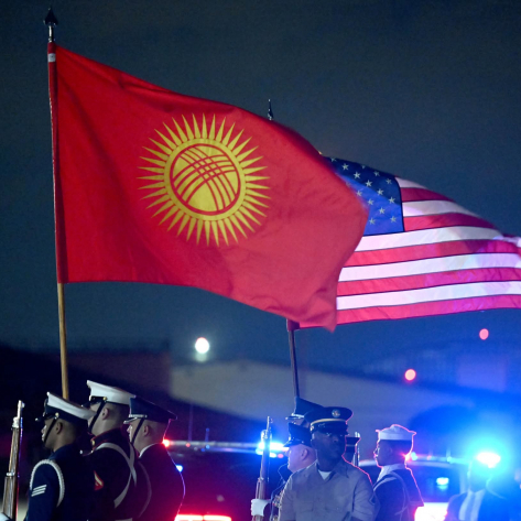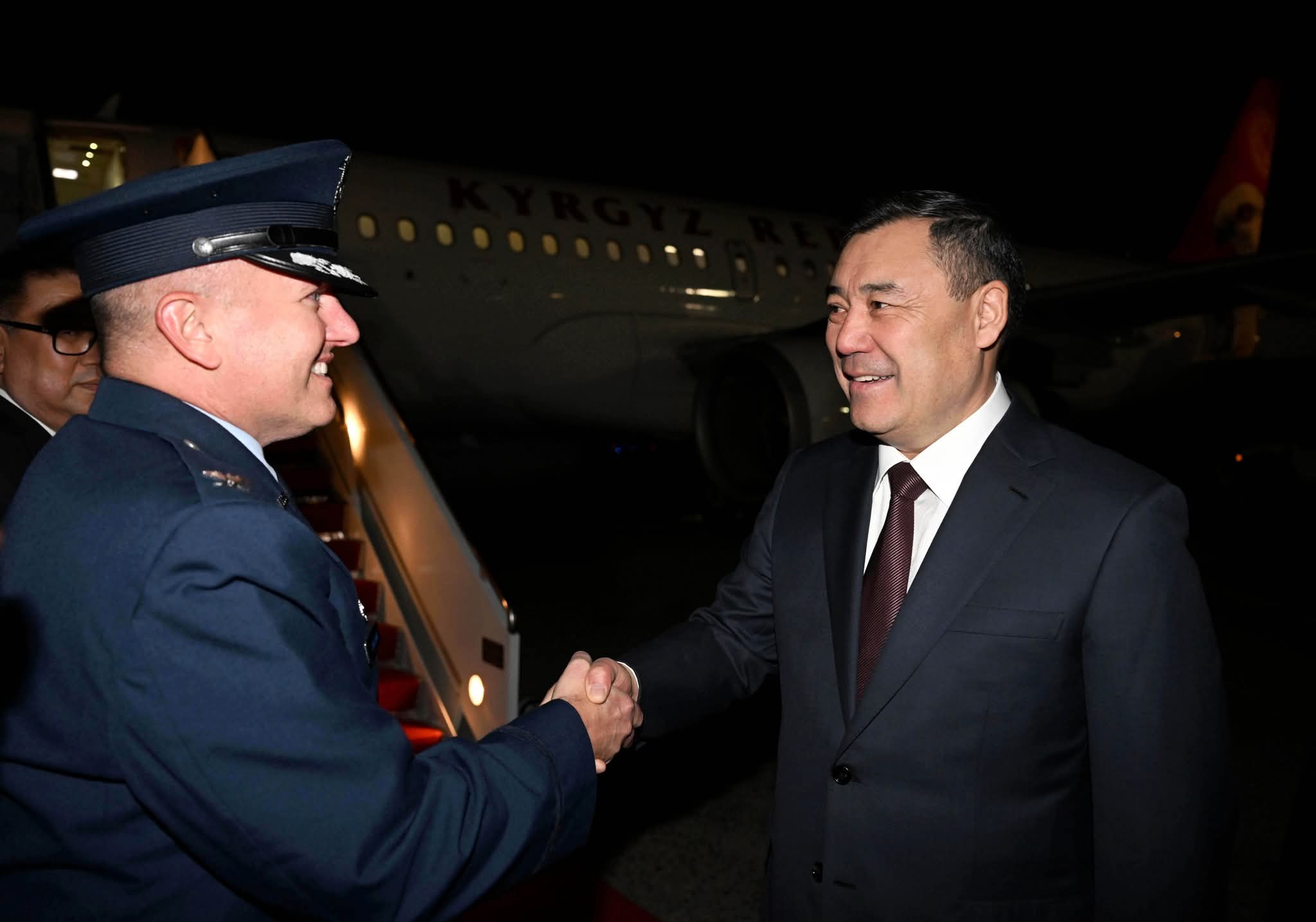 Президент Садыр Жапаровду АКШнын мамлекеттик катчысынын Түштүк жана Борбордук Азия иштери боюнча жардамчысы Пол Капур жана башка расмий адамдар тосуп алышты.