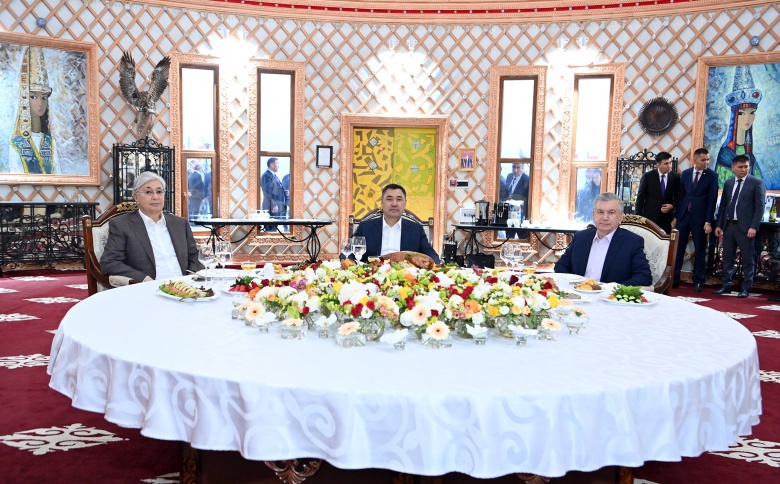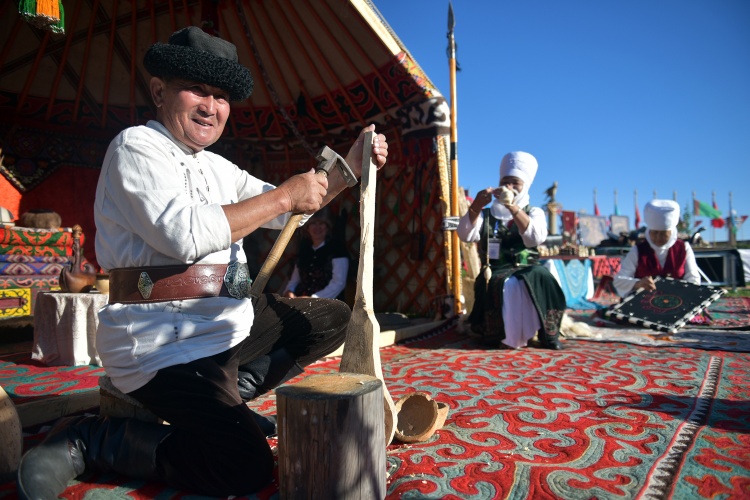 Андан кийин Садыр Жапаров, Касым-Жомарт Токаев жана Шавкат Мирзиёев кол өнөрчүлөр аллеясына өтүп, анда боз үйлөрдүн ички жасалгасы аркылуу кыргыз элинин улуттук каада-салттарын көрүп, кол өнөрчүлөрдүн: улуттук музыкалык аспаптарды, ала кийиз, шырдак жасоочулардын өнөрканаларын кыдырып чыгышты.