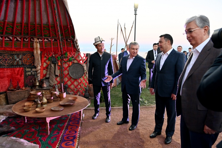 Кыргыз Республикасынын Президенти Садыр Жапаров, Казакстан Республикасынын Президенти Касым-Жомарт Токаев, Өзбекстан Республикасынын Президенти Шавкат Мирзиёев бүгүн, 20-июлда, Ысык-Көл облусунун Бостери айылындагы «Nomad» этнокомплексинде Борбор Азия мамлекет башчыларынын Төртүнчү консультативдик жолугушуусунун алкагында уюштурулган этномаданий программа менен таанышты.