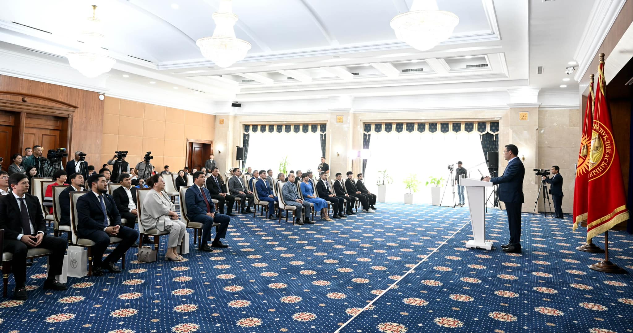 “Силердин ийгилигиңердин, жеңишке жетүүңөрдүн артында 10, балким 20 жылдаган талбаган, үзгүлтүксүз эмгек жатат. Спорт менен машыгып жүргөн инсан катары мен сиздерди абдан жакшы түшүнөм. Спортчулардын жеңиштери талыбас эмгектен, туруктуулуктан, темирдей бекем эрктен, ошондой эле машыктыруучулардын чеберчилигинен башат алат. “Эр эмгегин жер жебейт” деген накыл кеп сыңары, сиздердин талбаган эмгегиңиздер текке кетпей, Ата Мекениңерди даңктап эле тим болбостон, миңдеген жаштардын жүрөгүн жалындатып, Кыргызстандын атын чыгарууга чоң түрткү берип жатасыздар.