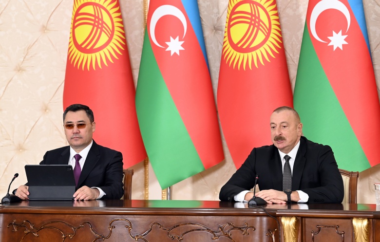 Бүгүн биз Кыргызстан менен Азербайжандын ортосундагы мамилени стратегиялык өнөктөштүк деңгээлине көтөрдүк. Тиешелүү Декларацияга жаңы эле кол койдук.